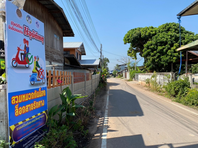 ติดตั้งป้ายรณรงค์ประชาสัมพันธ์ และสร้างจิตสำนึกความปลอดภัยทางถนน เพื่อลดปัจจัยเสี่ยงการเกิดอุบัติเหตุทางถนน