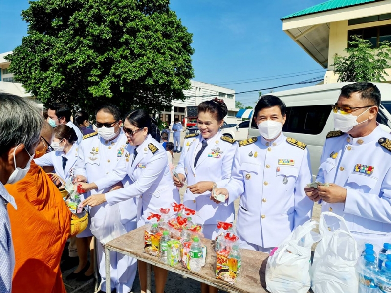 พนักงานส่วนตำบลผู้นำชุมชน ร่วม พิธีทำบุญตักบาตรถวายเป็นพระราชกุศล