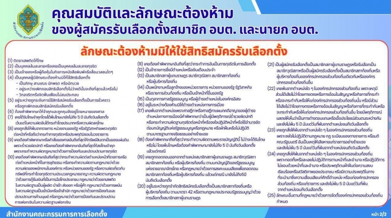 ประชาสัมพันธ์คุณสมบัติและลักษณะต้องห้ามของผู้สมัครรับเลือกตั้งสมาชิกสภา อบต. และ นายก อบต.